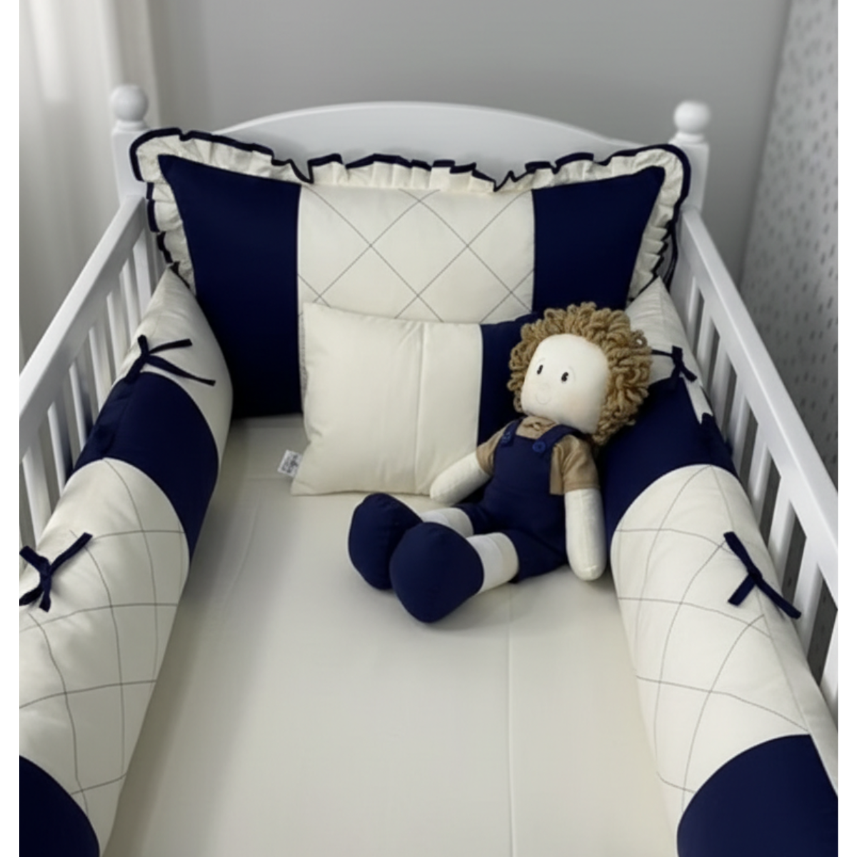 O Kit Berço Boneco Theo foi criado para proporcionar conforto, segurança e um toque de charme ao quartinho do seu bebê. Composto por 08 peças em tecido 100% algodão, esse conjunto une qualidade, suavidade e um design encantador, pensado especialmente para meninos.